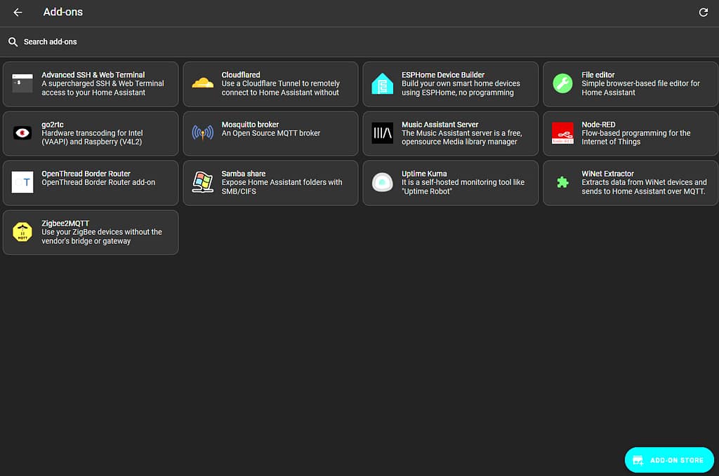 This will bring you to the add-ons collections that are provided by HAOS. Your store may not have all the same listed as mine, but start by searching for “CloudFlared” in the top search bar.